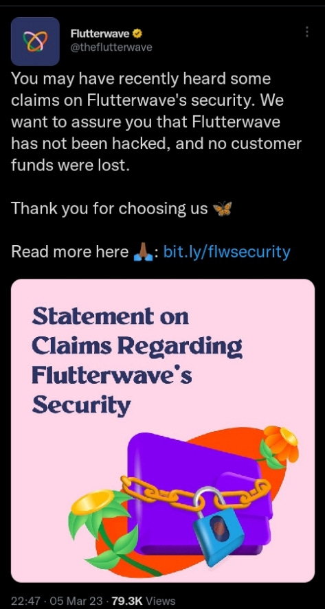 But Flutterwave officially denies the breach, claiming, "We found an odd pattern of transactions on some users' profiles. In accordance with our regular operating process, our staff conducted an investigation right away, which found that some users who had not turned on all of our advised security settings might have been vulnerable.